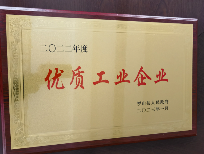 2023年1月榮獲羅山縣2022年度《優(yōu)質(zhì)工業(yè)企業(yè)》榮譽稱號!